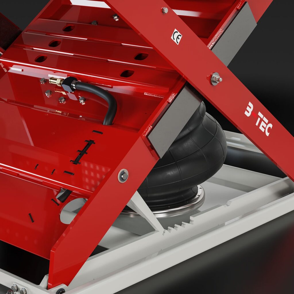 Im Vergleich zu hydraulischen Bühnen in der KFZ-Werkstatt, arbeiten unsere pneumatischen Hebebühnen komplett ohne Öl oder andere lackbenetzungsstörende Substanzen – unverzichtbar im Lack- und Karrosseriebereich.