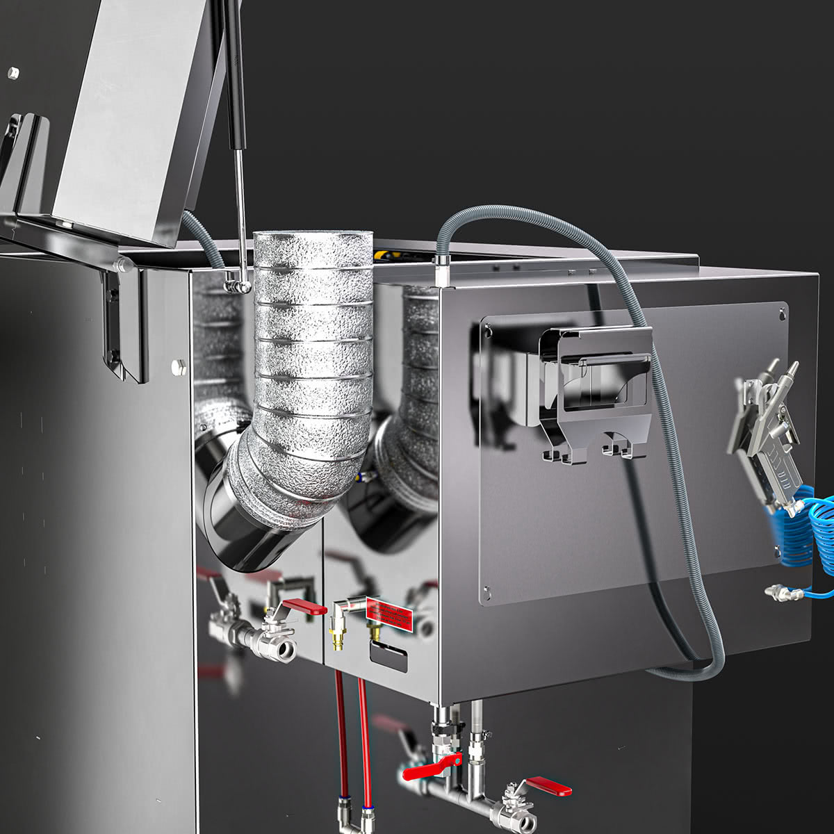 Mit Hilfe des serienmäßigen B-TEC-Absaugsystems werden gefährliche Dämpfe umgehend aus dem Gerät abgesaugt, sobald die Geräteklappe geöffnet wird.