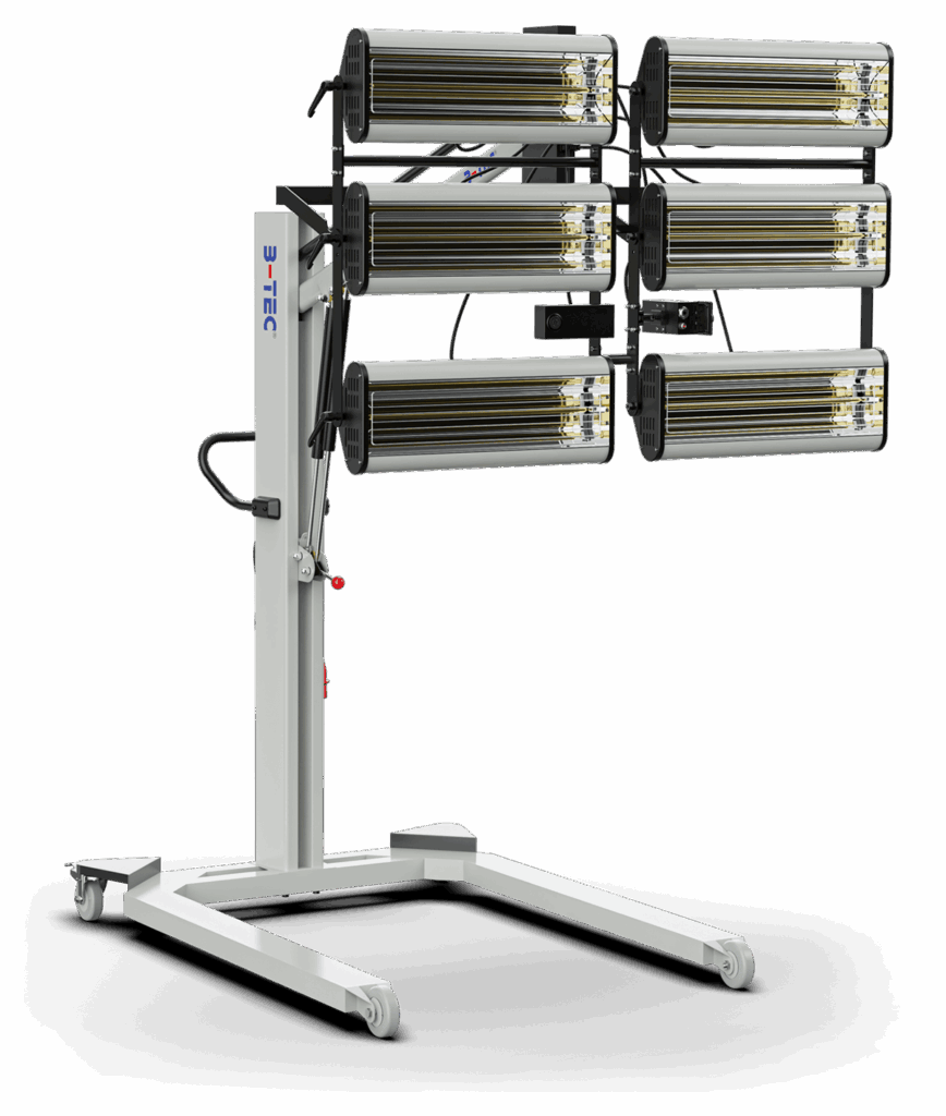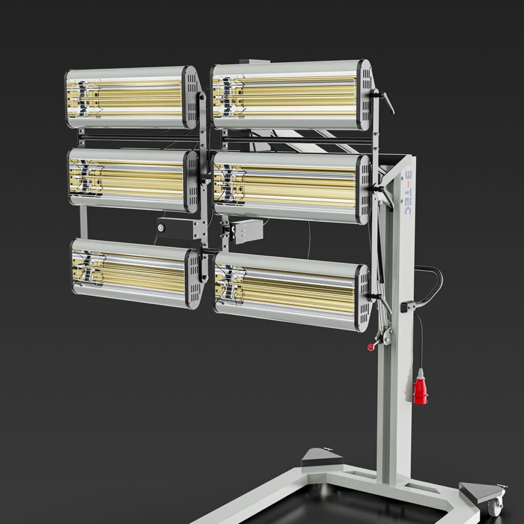 Kurzwelliger Infrarotstrahler mit 6 Strahlerfeldern für große Trocknungsflächen.