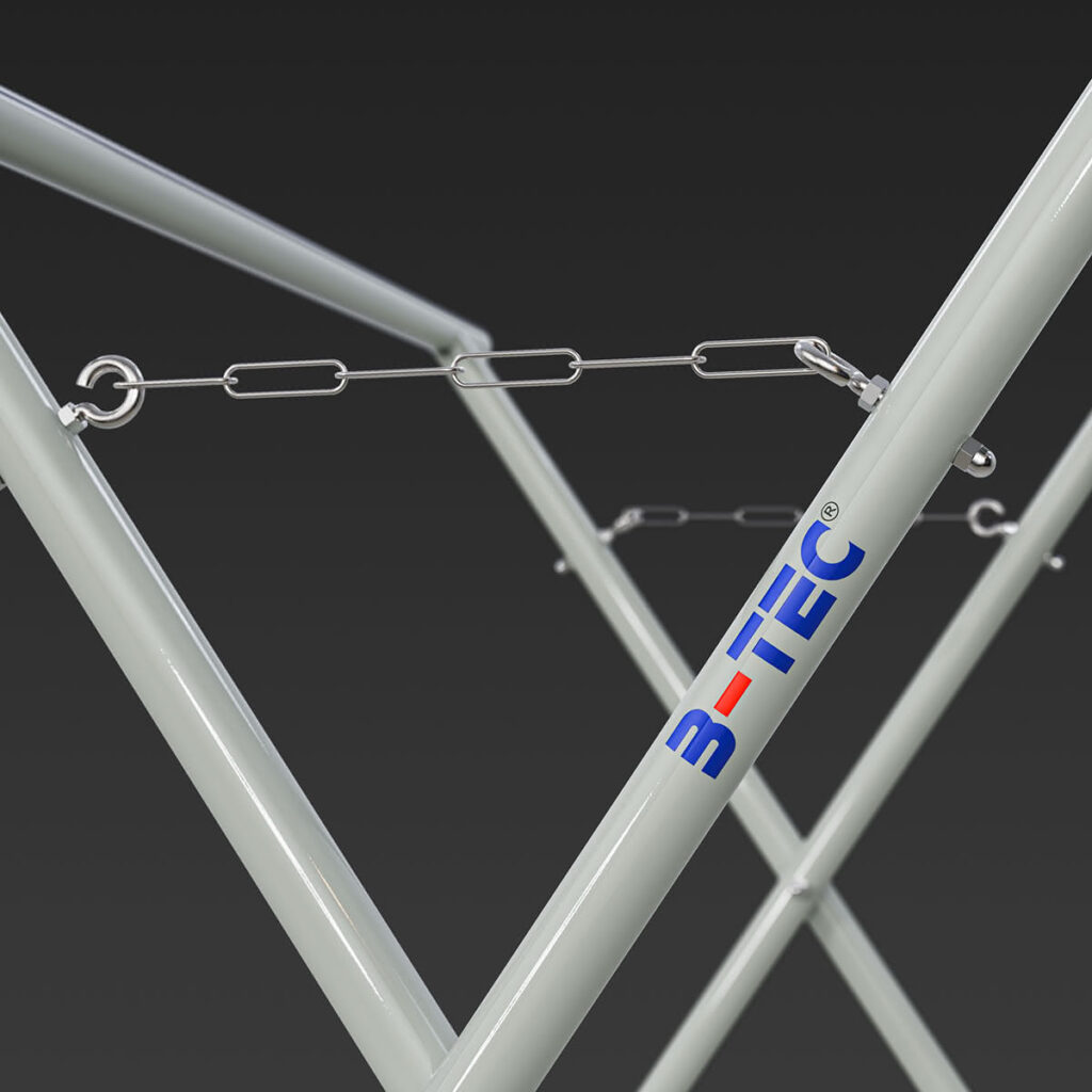 Der B-TEC PaintX-Pro X-Lackierständer sorgt mit seinem Rohrprofil für sicheren Stand auch auf Gitterrosten.