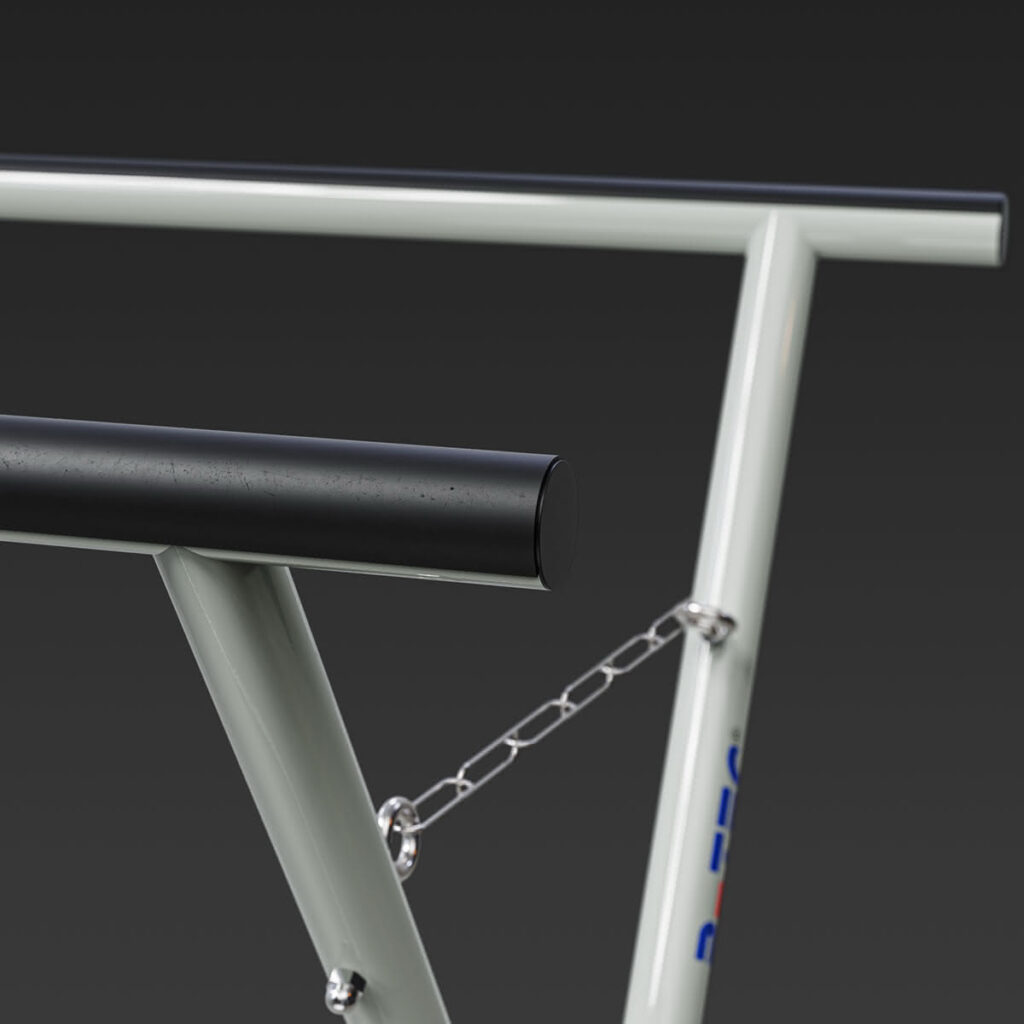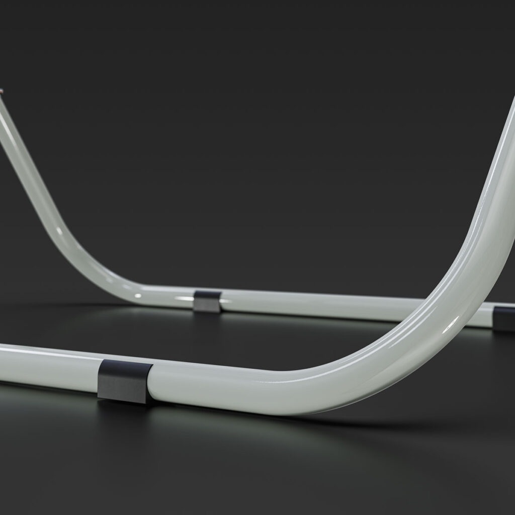 X-Lackierständer mit abgerundetem Profil, um nerviges Hängenbleiben im Gitterrost zu verhindern.