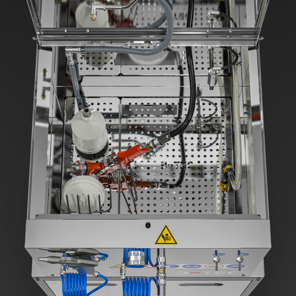 Der Starter-01 eignet sich zudem auch perfekt als zusätzliches Waschgerät zu unseren Kombinationsgeräten d-800 und SUMO. Denn wer möchte schon seine Klarlackpistolen im gleichen Waschgerät reinigen, wie die Füllerpistolen?