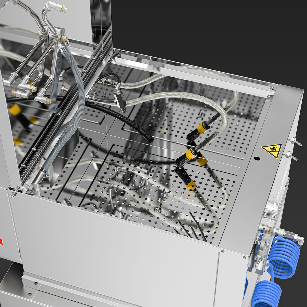 - Dichtschließende Luftdurchflutung der Pistolen während der Reinigung im Automaten